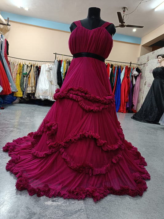 G6484 , Dark Magenta Puffy Maternity Long Shoot Trail Gown Size, (SIZE ALL)Regular price Rs. 4,000.00Regular priceUnit price / per-