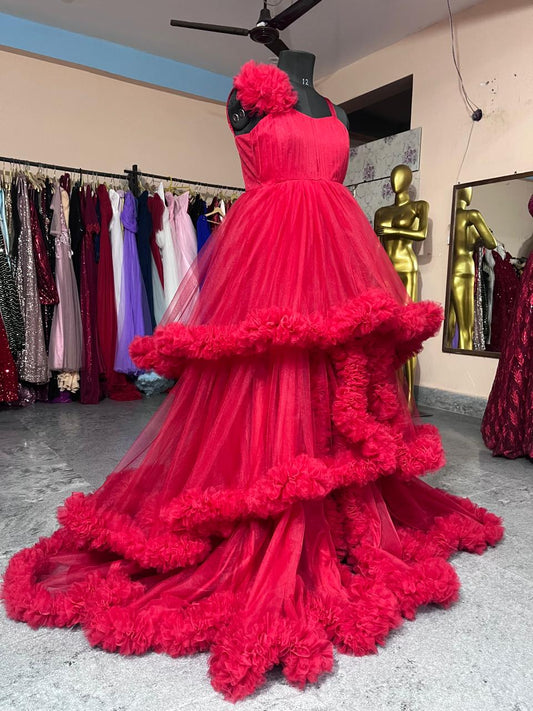 G969 ,Wine Slit Cut Puffy Frills Prewedding Trail Gown, (All Sizes)ppRegular price Rs. 11,900.00Regular priceUnit price / per-