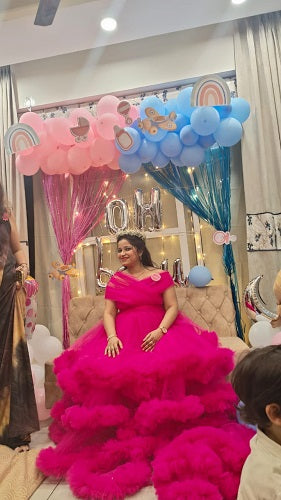 G1068, Hot Pink Slit Cut Ruffled Maternity Shoot Trail Gown Size: All, Color: AllRegular price Rs. 11,900.00Regular priceUnit price / per-