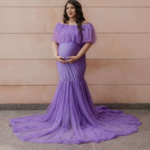 G77, Lavender Frilled Maternity Shoot Trail Gown, Size: All, Color: All