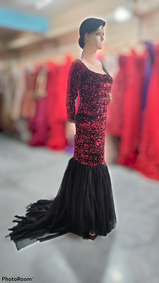 G421, Black & Wine Top Sequence with Bottom Lace Cutout Prewedding Trail Gown, Size: All, Color: All