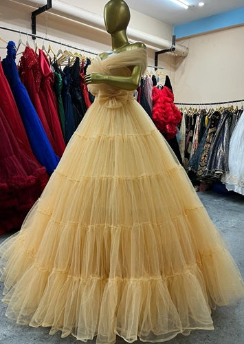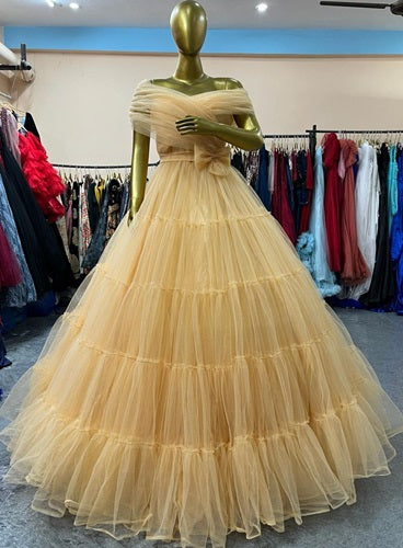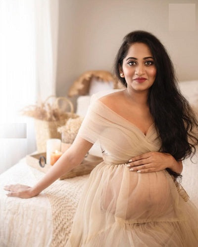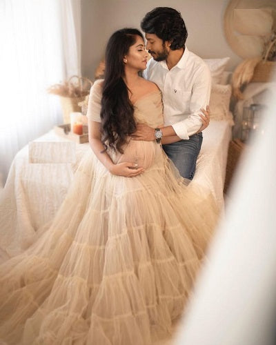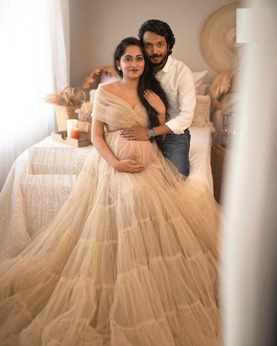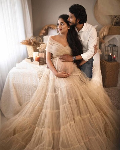 G1030, Beige Ruffled Maternity Shoot Trail Gown, Size: All, Color: All