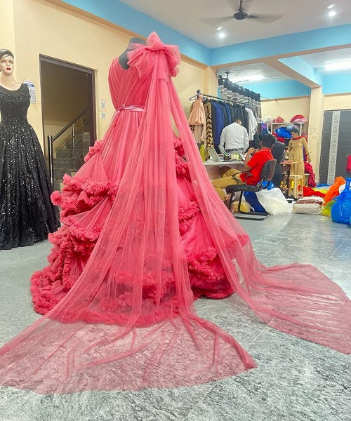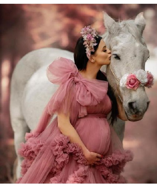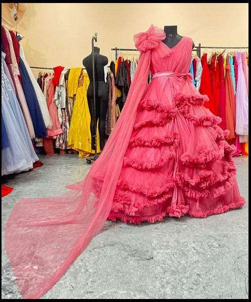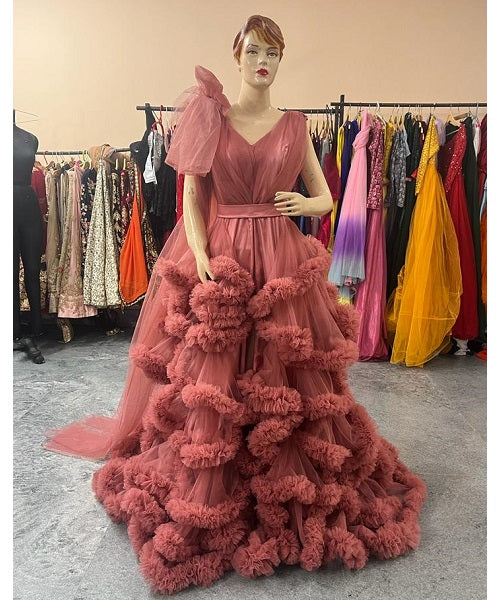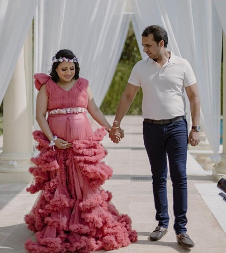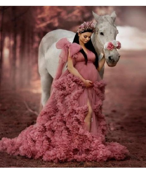 G878, Peach Ruffled Maternity Shoot Gown With Inner, Size: All, Color: All